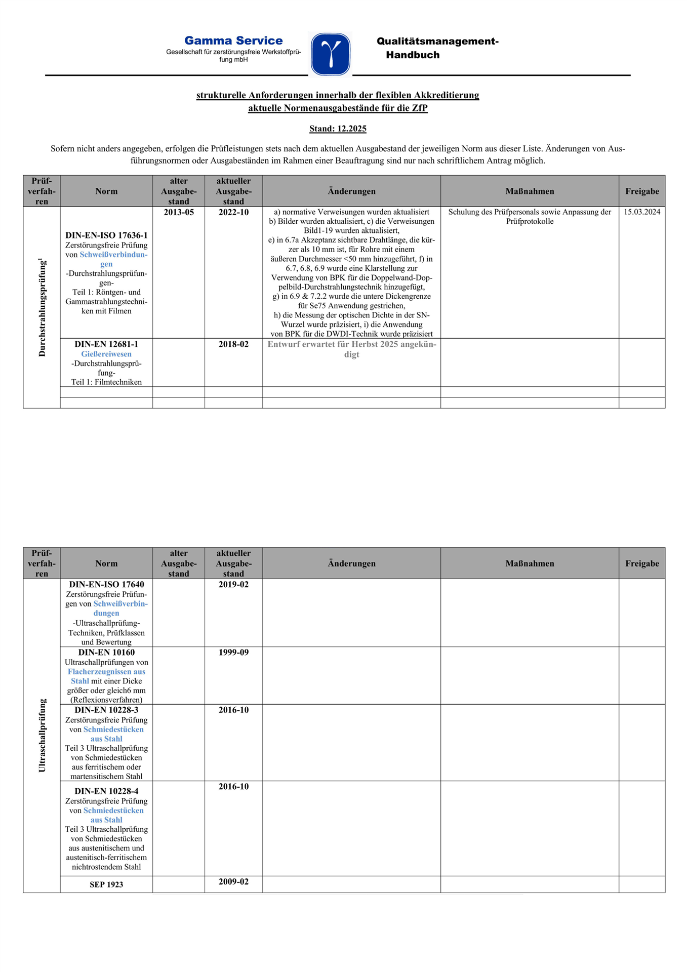 Gamma Service - Gesellschaft für zerstörungsfreie Werkstoffprüfungen mbH | Langener Str. 12 | D- 63329 Egelsbach | Tel: 06103 - 94040 |aktuell Januar 2026